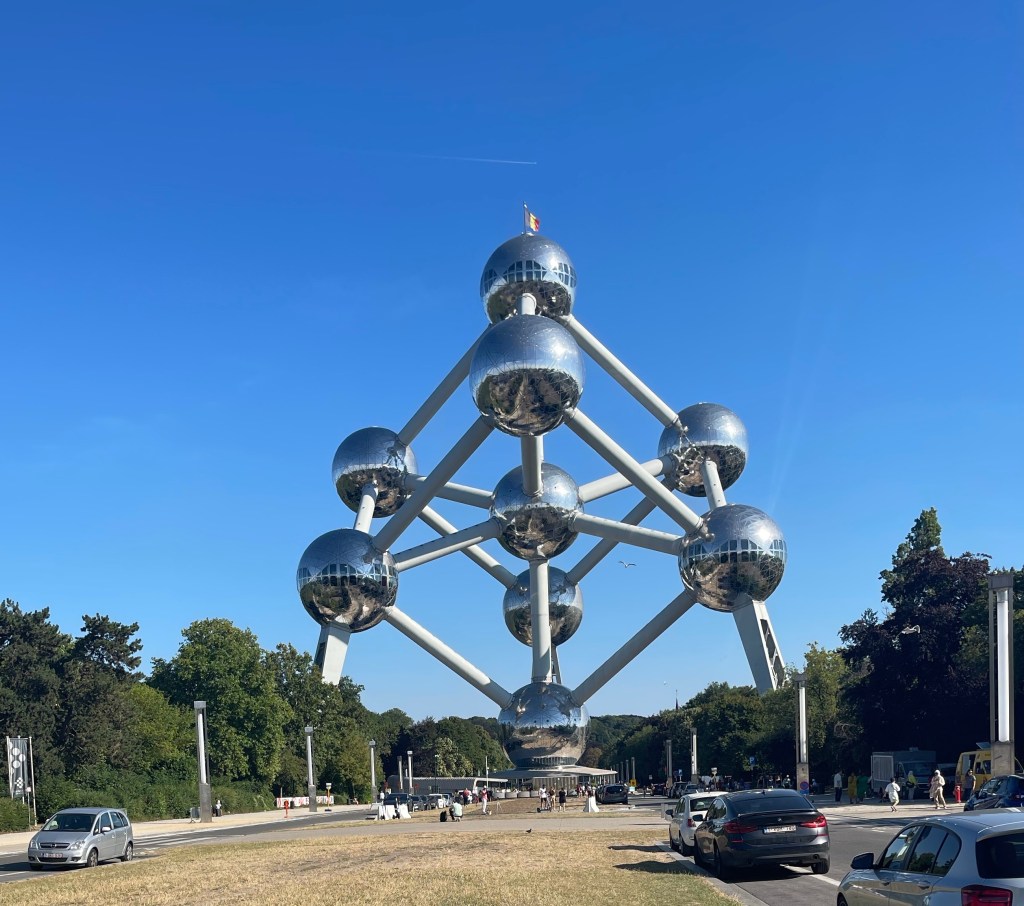 Atomium es una estructura de 102 metros de altura, construida en el año 1958 para la exposición general de primera categoría en Bruselas. Esta formado por nueve esferas de acero de 18 metros de diámetro cada una. Representa un cristal de hierro ampliado 165 mil millones de veces. El Atomium se ha convertido en un auténtico símbolo de la capital de Bélgica. La estructura, diseñada por ingeniero André Waterkeyn y los arquitectos André y Jean Polak, fue planeada para permanecer seis meses; sin embargo rápidamente se convirtió en una atracción turística.